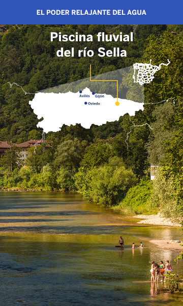 El río, que pasea su caudal a los pies del monasterio de San Pedro de Villanueva, se convierte en una piscina fluvial bajo la Cruz de la Victoria que pende del Puente Romano de Cangas de Onís.