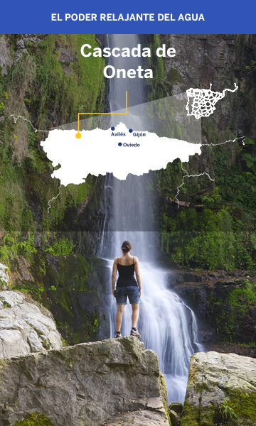 Cerca del pueblo de Oneta y tras cruzar tierras de prados, el río ha excavado un canal en la roca que se precipita en una cascada, la primera de las que se hallan en el interior de ese bosque que en primavera reluce amarillo por los narcisos.