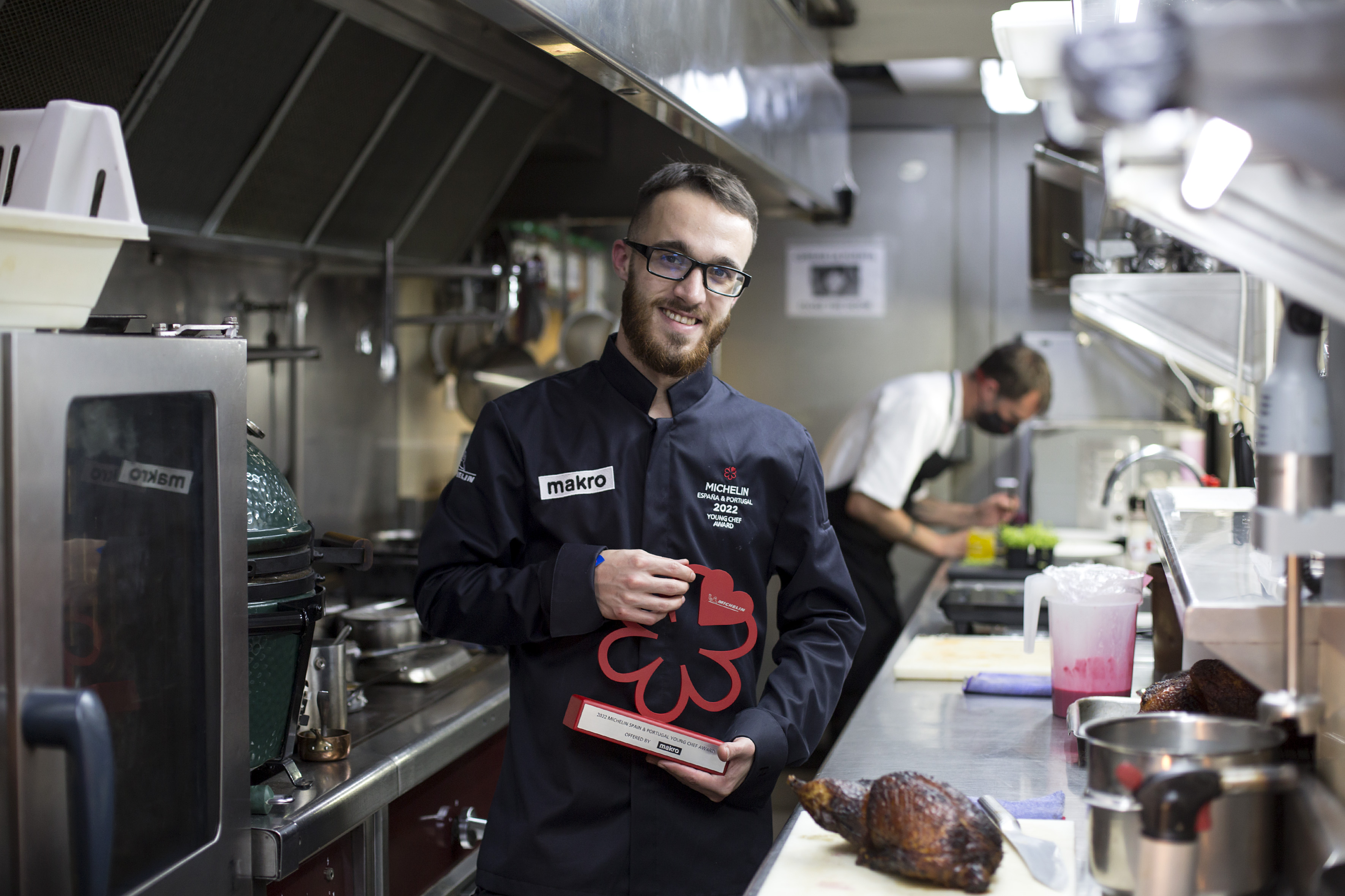 Recién cumplidos los 21, llegó como segundo de cocina a Skina y al poco tiempo quedó como jefe. El primer año mantuvo la estrella del restaurante y fue reconocido entre los 100 jóvenes talentos de la Gastronomía por el Basque Culinary Center. En la siguiente temporada, con 23 años, consiguió la segunda. “Era un niñato presentando platos a una clientela con mucha experiencia”, dice. “Hemos conseguido cosas muy buenas en poco tiempo, pero acabamos de hacer reformas y hemos ampliado el equipo para mejorar más. Nos queda mucho por hacer”, asegura con los pies en la tierra. ¿Sueña con la tercera estrella? “Se puede, pero el objetivo es preocuparnos por mejorar todo, paso a paso, desde la organización a la limpieza. Si se hace bien, todo llegará”, afirma.