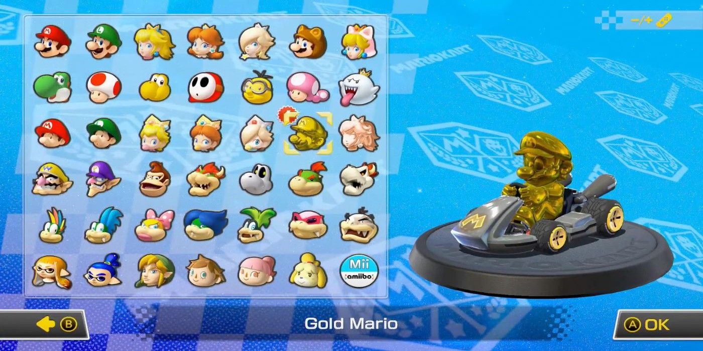 Al seleccionar personajes, los jugadores tendrán la opción de cambiar entre cada aspecto de Metal Mario. Además de Mario, hay muchos otros aspectos dorados para los personajes del juego. Cada uno de estos tiene requisitos diferentes y no ofrece beneficios de juego. Todos son puramente cosméticos, pero son una excelente manera de lucirse en una carrera en línea en Mario Kart 8 Deluxe.