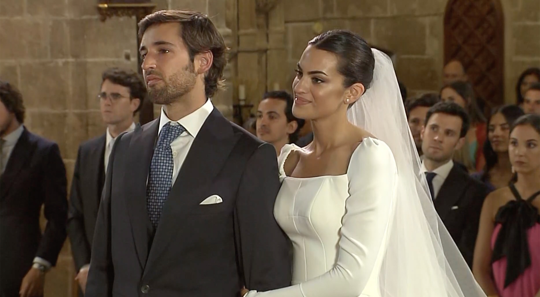 Dejando a un lado su faceta más llamativa, Marta Lozano ha escogido para la ocasión un vestido muy clásico y sencillo, lleno de elegancia. Un diseño creado en exclusiva por Caprile, que saca el máximo partido a su figura gracias a su escote cuadrada y su falda sirena. Tal y como ha informado ¡Hola!, el estilismo ha sido confeccionado en crepe marocain de seda natural, un tejido de aspecto ondulado y estriado. Pero el elemento más llamativo ha sido la cola, de tul y 5,5 metros de largo. Un look muy estilo Lady Di, con el que la novia ha conseguido brillar más que nunca en uno de los días más importantes de su vida.