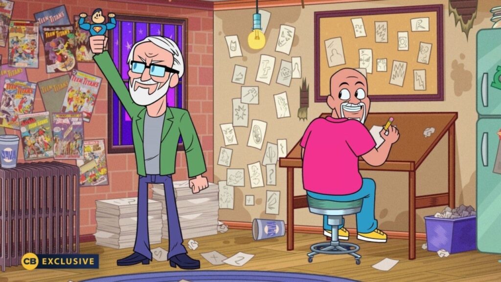 Como puede ver en el clip, las cosas no van tan bien para Wolfman y Perez, quienes están tratando de reinventar a los Jóvenes Titanes para que puedan salvar a DC de “una condena financiera segura”, y solo tienen 24 horas. La presión aumenta y ellos, como dice Pérez, tienen “squat, zip, zero” para mostrar por su trabajo hasta ahora. Wolfman se mantiene optimista a pesar de la presión y luego se le ocurre una idea brillante.