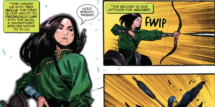 En la película de MCU Shang-Chi y la Leyenda de los Diez Anillos, Shang-Chi y su amiga Katy Chen viajan a Ta Lo para evitar que el padre de Shang-Chi, el mandarín, abra un portal demoníaco y libere a un demonio succionador de almas. Cuando llegan, Shang-Chi y Katy son recibidos por los residentes de Ta Lo y entrenan con ellos para prepararse para la llegada del mandarín. Mientras Shang-Chi aprendió las técnicas de artes marciales de su madre, Katy aprendió tiro con arco y rápidamente se volvió tan buena en eso que fue fundamental para derrotar al Morador de la Oscuridad cuando llegó disparándole en la garganta con una flecha. El tiro que Katy clavó sería suficiente para impresionar a Hawkeye, no tenía sentido que pudiera hacerlo después de tan poco tiempo de práctica. Sin embargo, con la revelación hecha por la madre de Shang-Chi en los cómics, los fanáticos ahora saben cómo fue posible el tiro que salvó la vida de Katy.