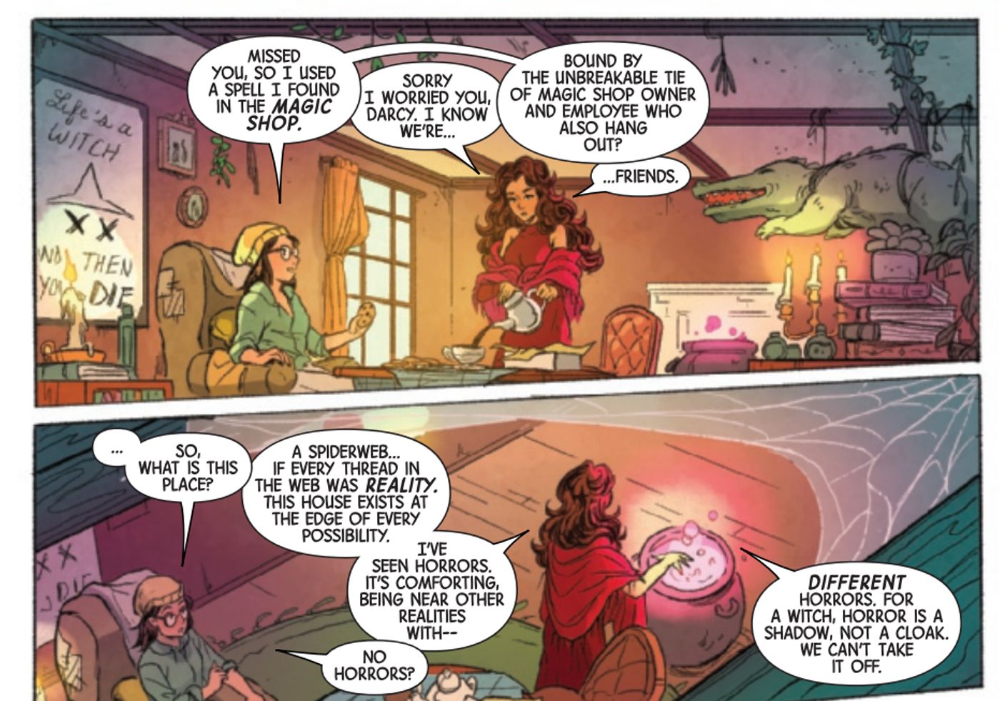 - The Witch House en Women of Marvel #1 ofrece a Scarlet Witch un refugio seguro del caos de su vida y el multiverso.