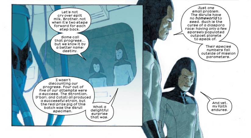 Por más mortal que sea un híbrido Skrull-Xenomorfo, los androides claramente tienen un gran problema en sus planes que les impide desatarlos en el universo. Afirman que “Los Skrulls no tienen un mundo natal que sembrar”, lo que significa que no tienen dónde plantar adecuadamente sus ejemplares para una adquisición importante. Como los Skrulls son básicamente nómadas en busca de un hogar, siempre se están moviendo de planeta en planeta, lo que hace que sea casi imposible que ocurra una invasión. Sin embargo, esto no significa que sea imposible, ya que todo lo que se necesitaría es que los androides encuentren campamentos Skrull densamente poblados y lleven a cabo su plan allí.