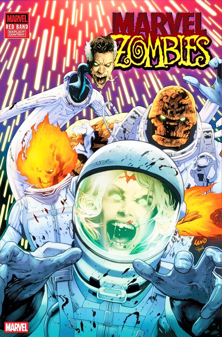 Según lo informado por PopverseMarvel Zombies: Red Band #1, escrito por Ethan S. Parker y Griffin Sheridan, con arte de Jan Bazaldua, inicia una serie de cinco números, que contará una versión paralela y zombificada de la historia de Marvel, con un enfoque en los Cuatro Fantásticos.