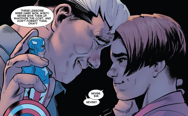 Peter lucha contra las alucinaciones durante su estadía en el hospital (junto con una experiencia cercana a la muerte a través de un monstruo en el sótano del hospital en el número anterior). En un momento dado, recuerda su infancia, mucho antes de que el tío Ben fuera disparado por un ladrón a quien Peter, infamemente, decidió no perseguir. Peter está siendo reprendido por Ben, quien también aprovecha la oportunidad para enseñarle a su sobrino una lección sobre cómo pagar el precio por hacer buenas obras. Él compara esta práctica con la de una soldadura … cuando los lectores ven que Peter Parker posee una figura del Capitán América.