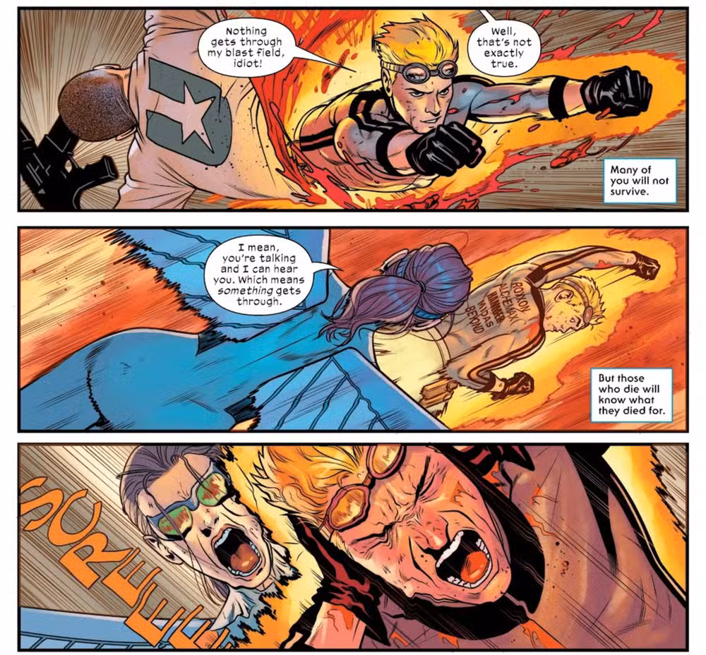 En los recientes Los últimos #21 – de Deniz Camp, Pere Pérez, Federico Blee y Travis Lanham – se presenta a los fans “Balístico”también conocido como Cannonball de Sam Guthrie. Cannonball es un ex miembro de los X-Men y los Vengadores, con la capacidad de generar un ‘campo explosivo’ impenetrable que le permite volar a velocidades increíbles y al mismo tiempo lo hace inmune al daño.
