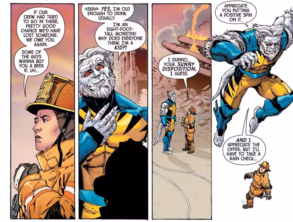 Sin embargo, en un giro divertido, él hace tiene sus diferencias – El Lobezno de Leonard mide 8 pies de alto. y tan alegre que todos asumen que es un adolescente bajo el pelaje. Es divertido ver una versión de Wolverine que es físicamente lo opuesto a Logan, con una reputación heroica tan impecable que los niños literalmente aplauden cuando aparece para ayudar.