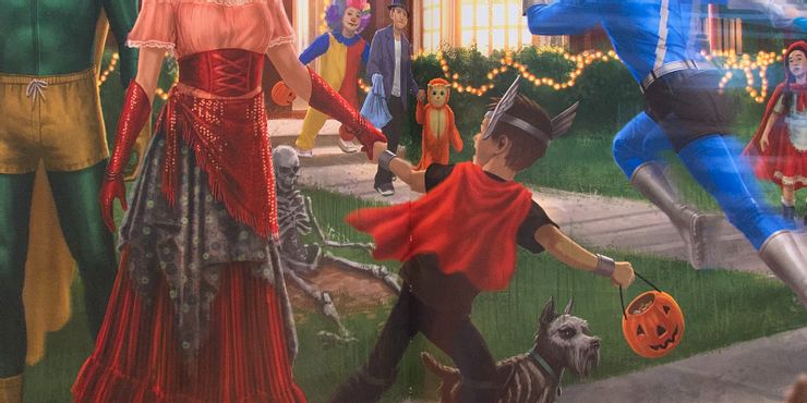 ahora parece que Wanda Vision consideró posicionar a Wiccan como el reemplazo de Thor desde el principio. Arte conceptual presentado en El arte de WandaVision de Marvel incluyó un gran fotograma clave del episodio de Halloween, y es en esta pieza donde el disfraz de Billy Maximoff difiere del producto final. En lugar de usar un traje que se parece mucho al traje de cómic de Wiccan, como finalmente lo hizo en el programa, se muestra a Billy usando algo que se parece al traje clásico de Thor. Se presenta una versión del casco alado y una capa roja, que es una referencia al tiempo de Billy en los cómics como el héroe llamado Asgardian. Originalmente tomó este nombre para actuar como reemplazo de Thor en los Jóvenes Vengadores, y ahora parece Wanda Vision casi hizo lo mismo.