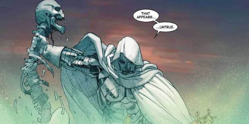 En Marvel Comics, el todopoderoso emperador DOOM mata fácilmente a Thanos simplemente arrancando su columna vertebral de él. Como se puede ver en el Avengers: Doomsday Light Show, la silueta del doctor Doom, con el villano sosteniendo el esqueleto de alguien, incluido su cráneo, es un claro guiño a la fatalidad matando a Thanos en los cómics. Esto se burla de que la fatalidad del MCU ha hecho lo mismo.