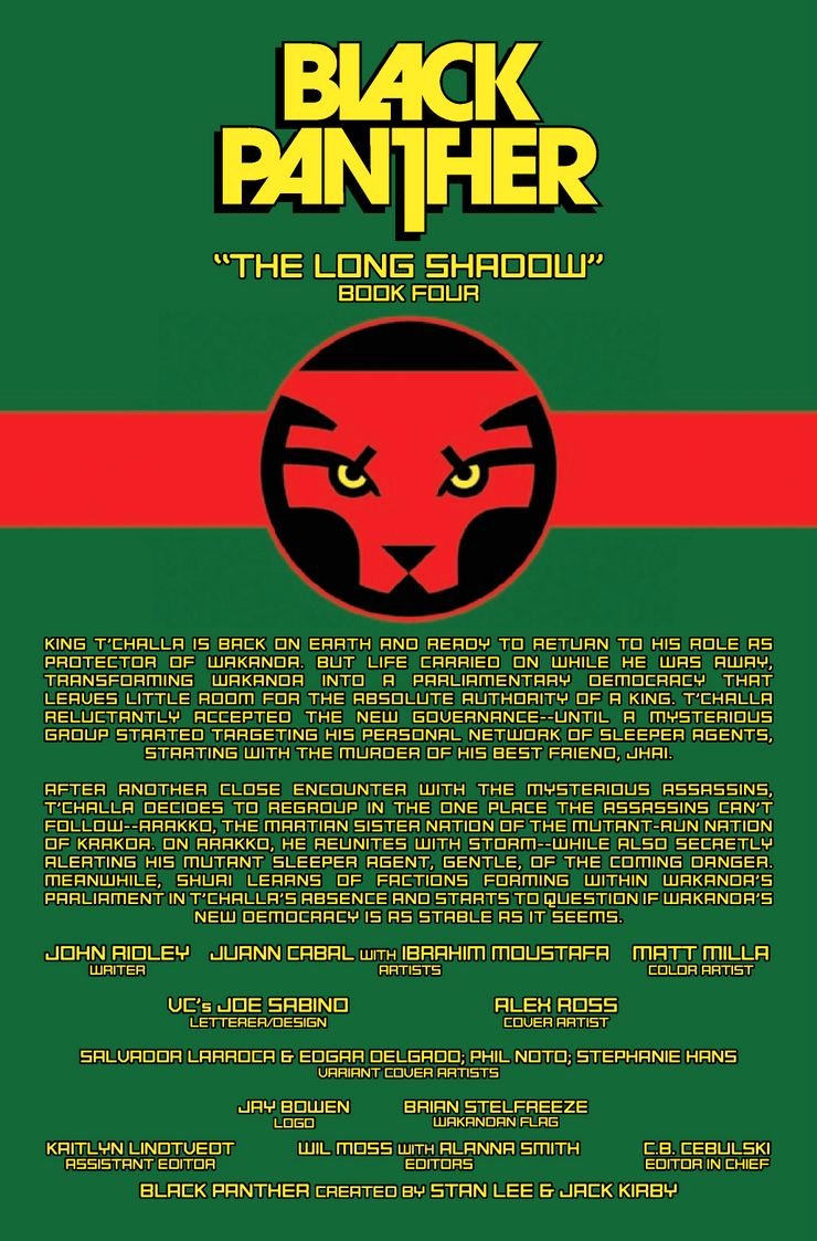 LA SOMBRA LARGA, CUARTA PARTE La vida de Shuri pende de un hilo, y con T’Challa fuera del planeta, ¡las cosas no pintan bien! Pero antes de que T’Challa pueda ayudar a su hermana… la verdad finalmente saldrá a la luz. ¿Ha sido capturado finalmente el cabecilla del asesino?