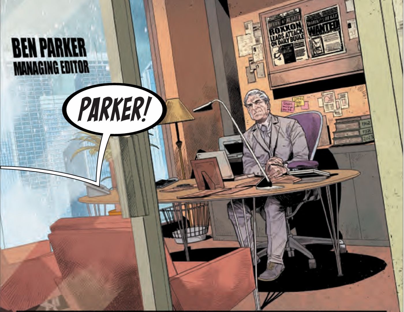 Hay muchas diferencias notables con los mitos de Spider-Man en este nuevo universo. Uno de los más importantes es la situación en la que el tío Ben sobrevive mientras la tía May muere (en Universo definitivo #1). Ben trabaja en el Daily Bugle como editor jefe junto a J. Jonah Jameson, quien sigue siendo editor en jefe. Aunque el brusco Jameson ha llegado a ser retratado como un amigo y mentor de Peter, en lugar de un antagonista, la caracterización definitiva de su relación es ciertamente de naturaleza más ligera. En una revelación cómica, Jonah le da una cálida bienvenida a Peter al trabajo, mientras ladra su clásico “PARKER!” a Ben. Más tarde le presta a Peter una corbata y le pide que controle a Ben antes de un funeral.