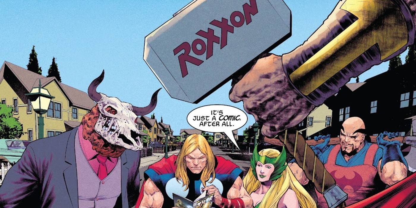 No debería ser una coincidencia que la apariencia de Chad Hammer sea similar a la mirada abatida de Chris Hemsworth cuando interpretó a Thor en la segunda secuela en pantalla del personaje. Thor: Ragnarök. Roxxon en sí es una parodia de Marvel, y su enfoque para vender la cultura de los superhéroes con una agenda se lee como una parodia más amplia del Universo Cinematográfico de Marvel. Existe una creciente percepción y crítica de que Marvel trata sus propiedades y personajes como productos como si fueran simplemente un cómplice corporativo.