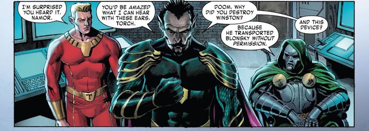 En el nuevo Maestro: Guerra Mundial M #5 por Peter David y Sebastian Cabrol, Maestro se ha asociado con su antiguo villano Abominación para detener al trío de héroes alineados contra ellos. Habiendo sido despertado por Doom, Abominación recibió un teletransportador para ser llamado de regreso a la sede de Doom. El receptor del teletransportador se perdió, pero cuando Abominación lo activó, Namor pudo escuchar un débil sonido proveniente del dispositivo. Era tan débil que la Antorcha Humana se sorprendió de haberlo escuchado, a lo que Namor respondió que sus oídos en realidad pueden escuchar mucho más de lo que puede escuchar una persona normal.