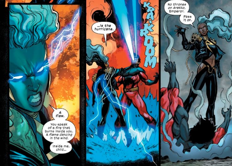 Pero X-men rojo #2 finalmente confirma por qué Storm y Jean Grey siempre han sido considerados los más grandes de los Omegas. Escrito por Al Ewing y con arte de Stefano Caselli, X-men rojo # 2 ve a dos Omegas ir a la guerra entre sí: Storm y Vulcan, el hermano menor de Cyclops, que una vez conquistó todo el Imperio Shi’ar. Sorprendentemente, la confrontación no es tan explosiva como los lectores esperaban, porque Storm puede establecer un circuito mutante entre los dos manipuladores de energía y usar ese circuito para romper la voluntad de Vulcan. Más tarde, Abigail Brand le explica a Vulcan por qué fue derrotado tan fácilmente. “Principalmente usas tu poder en un nivel superficial,” ella explica, “que es natural. Ororo fue entrenada en el uso de sus poderes al más alto nivel.“