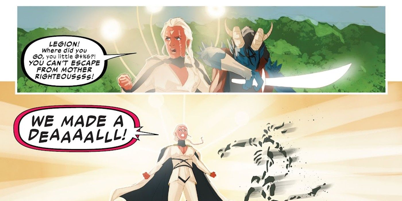 “/> Mother Righteous estaba convencida de que el increíble poder de David Haller sería fundamental para que ella obtuviera el estatus de Dominio, derrotara a sus hermanos siniestros y evolucionara hasta convertirse en una deidad fuera del espacio y el tiempo. Sin Legion, Righteous ha estado intentando ganar poder mediante la manipulación de White Hot Room y la conexión de Jean Grey con Phoenix Force. Si Mother Righteous tenía razón, y Legion podría haberla ayudado a alcanzar Dominion, eso significa que también podría desempeñar un papel importante para detener el ascenso de Dominion, o al menos el fin de los mutantes a través de la ascensión.