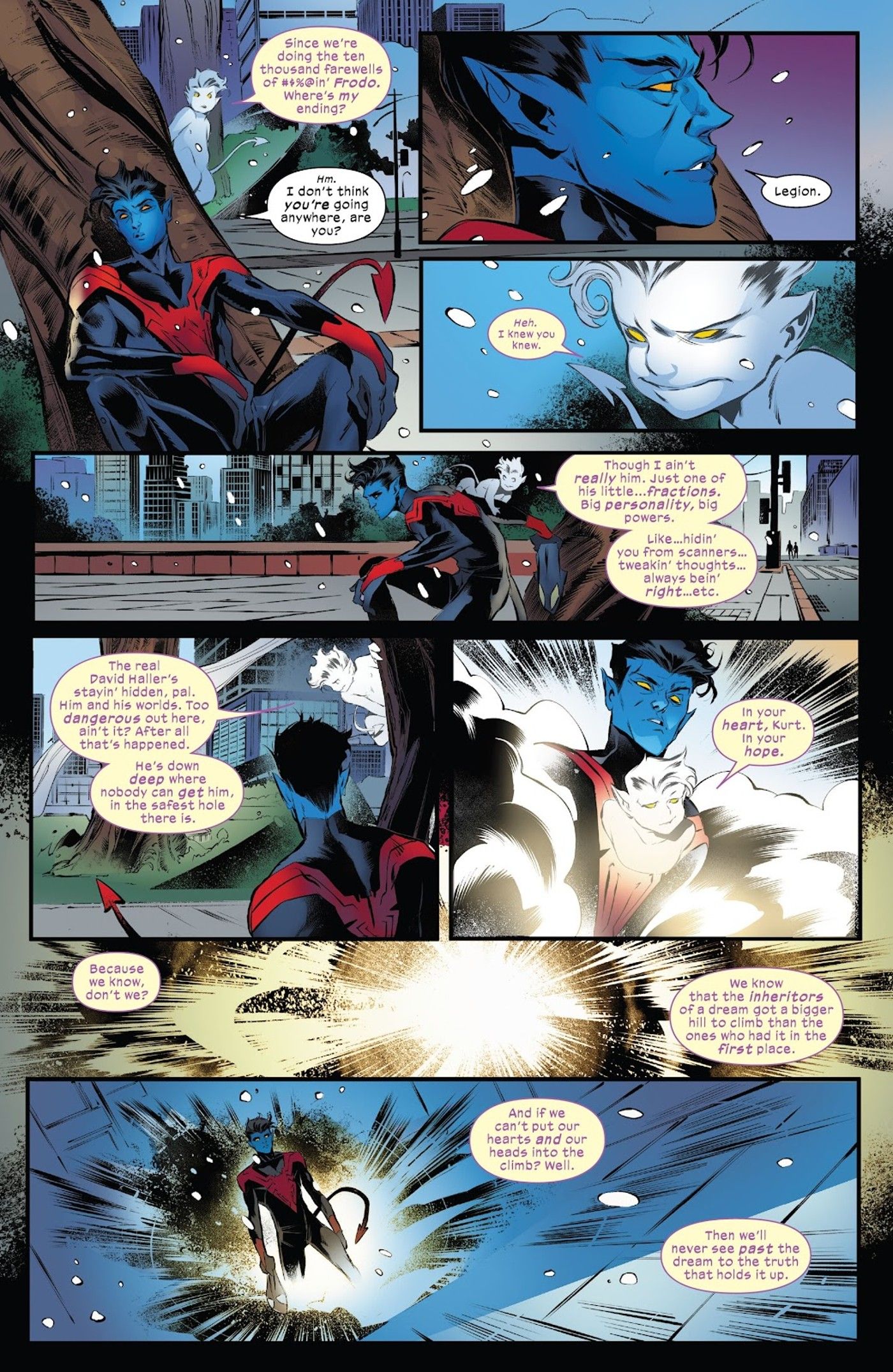 - Legion, un mutante que deforma la realidad, se ha estado escondiendo dentro del corazón de Nightcrawler y Hopesword.