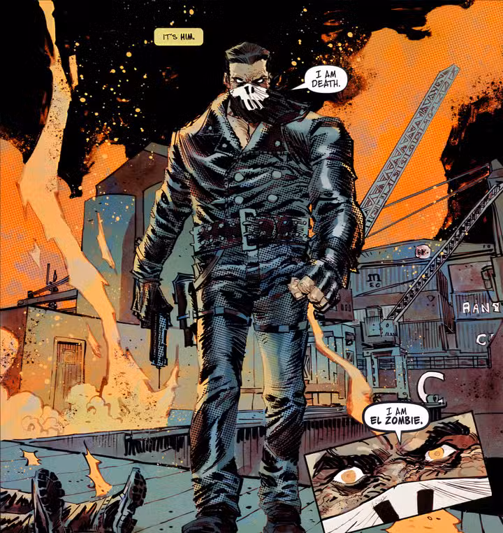 Punisher y El Zombie pelean y, desafortunadamente para Frank, El Zombie es prácticamente imparable. Gracias a la droga sintética ‘zombi’ de Mollero, El Zombie lucha con una determinación que supera la del Punisher. Disparar y apuñalar no hace nada para frenar a El Zombie, y antes de que Frank se dé cuenta de lo sucedido, los hombres de Mollero logran capturar a Punisher con vida.
