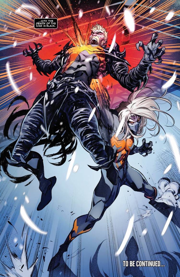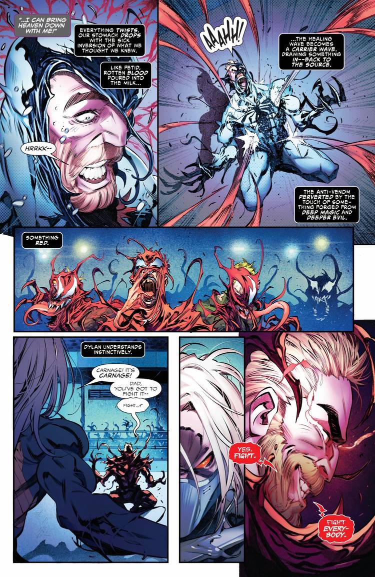 Si bien Eddie finalmente tiene éxito, la táctica se vuelve en su contra cuando Carnage logra infectar Anti-Venom. Empezando a enloquecer de rabia homicida, Dylan Brock no tiene más remedio que sacrificar a su padre, poniendo fin al reinado del Rey de Negro.