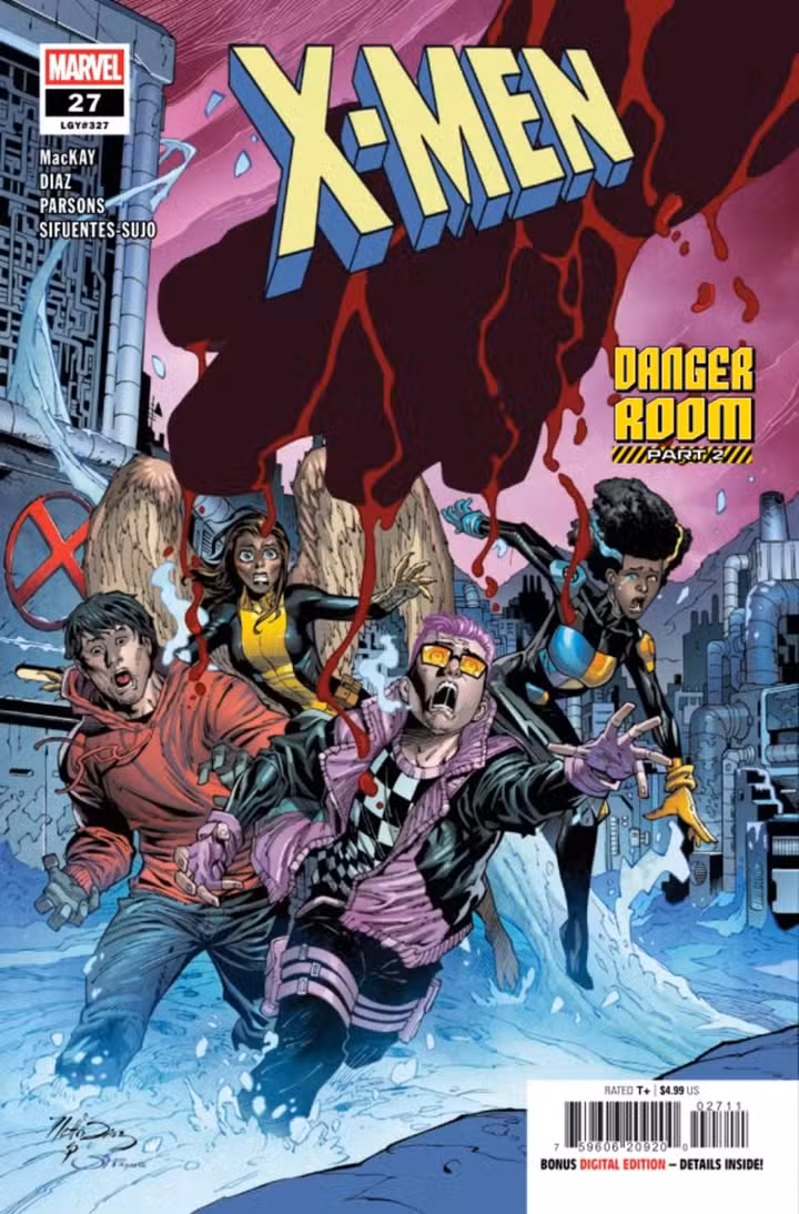 X-Men El número 27 está escrito por Jed McKay, con arte de Netho Diaz. El número revela cómo el personaje conocido como Maxine Danger, trabajando en nombre de Beyond Corporation, forma su nuevo equipo de Danger Room.