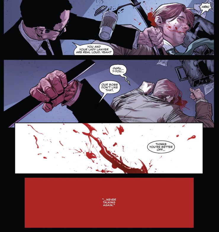 Sin embargo, los héroes que aún no han sido encarcelados han decidido luchar contra Fisk dentro de los límites del sistema legal, nominando a Luke Cage para competir contra Fisk en las elecciones para alcalde. Naturalmente, esto es algo con lo que Fisk está extremadamente descontento. Si bien Luke tiene a Foggy Nelson como su abogado para ayudarlo a navegar por la legalidad de su candidatura, esto ha puesto al mejor amigo y socio legal de Matt Murdock en peligro extremo. Como resultado, el fin de la nueva Reino del diablo #3 ve a Fisk enviando a sus hombres para aparentemente silenciar a Foggy para siempre.