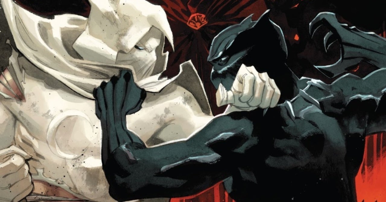 El problema ve al trío de personajes involucrados en una pelea en la luna, mientras Black Panther intenta razonar con Moon Knight por última vez. En una secuencia anterior, T’Challa intenta luchar contra Khonshu, y le pregunta exactamente cómo su plan realmente ayudará en la lucha contra Mephisto. Khonshu lanza a Mjolnir a T’Challa, solo para que se desvíe y lo pierda por completo, mientras T’Challa procede a controlar su vuelo en el aire.