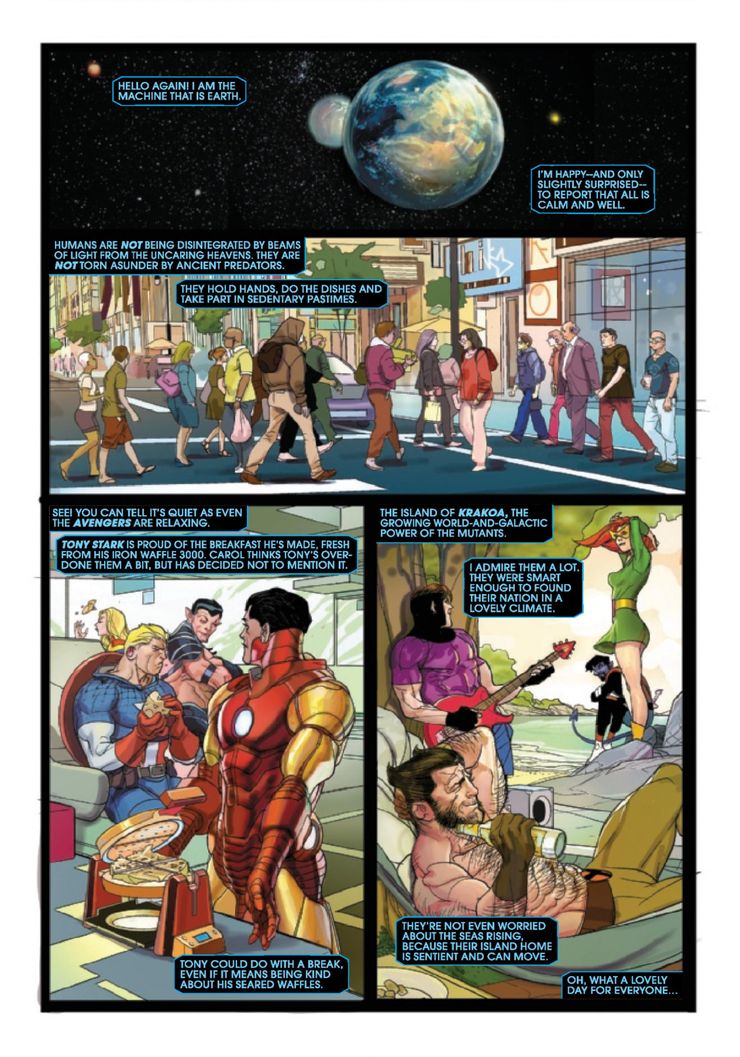 Mientras tanto, el resto de la vista previa de A.XE: Víspera del Día del Juicio #1 de Marvel Comics presenta a los Eternos que abandonaron su hogar tratando de descubrir su próximo curso de acción.