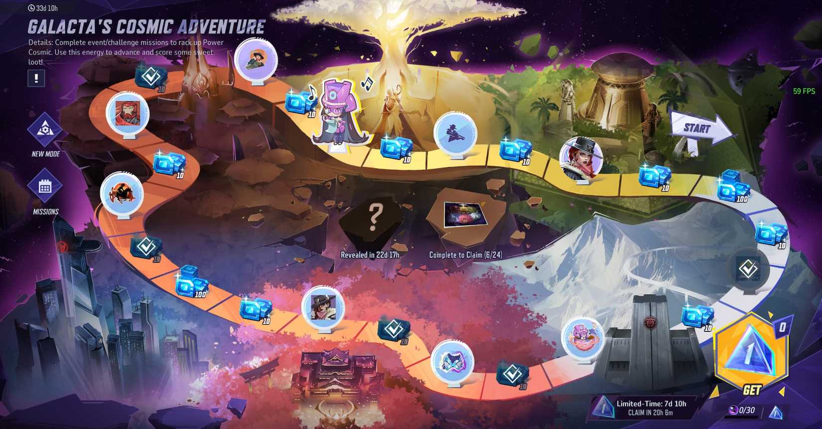 Un tablero de juego especial estará disponible durante toda la duración de la aventura cósmica de Galacta y se puede acceder a través de la página de inicio dentro de Rivales de Marvel. Habrá misiones especiales, que se pueden encontrar en la pestaña “Temporada” y luego seleccionando “misiones”, que se adaptan específicamente a este evento y giran principalmente en torno al modo de juego Rumble Clon. El [Event] La sección de aventura cósmica de Galacta es el hogar de cada uno de los Misiones que debe completar para obtener la nueva moneda especial, Galacta’s Power Cosmic.