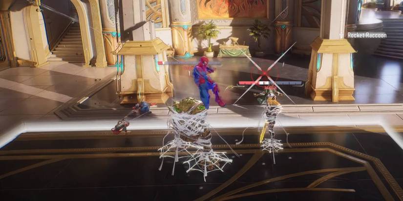 Esta habilidad del simbionte es una excelente manera de acabar con los enemigos que tienen poca salud, lo que brinda a Peni Parker y Spider-Man formas más consistentes de asegurar las eliminaciones. Cuando Chica Ardilla está en equipo con Spider-Man, él recibe el Team-Up Extra Web-Fluidque le da a Squirrel Girl una habilidad Web-Bomb. Al usar esto, Chica Ardilla puede desatar una explosión al entrar en contacto con el entorno o un enemigo, dañándolos e inmovilizándolos por un corto tiempo.