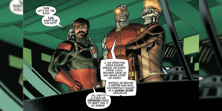 El Capitán América y Hulk son miembros veteranos de los Vengadores, con el Gigante de Jade como parte del equipo inaugural, mientras que Steve Rogers se unió a algunos problemas después de su debut. En diferentes historias, los dos héroes se han convertido en uno, ya que las circunstancias mágicas y multiversales llevaron a algunas versiones de una combinación de héroe Hulk/Capitán América. Sin embargo, con el Multiverso amenazado por Multiversal Masters of Evil, Ghost-Rider está reclutando a su propio equipo para contraatacar, incluido un nuevo híbrido de Hulk y Cap que el equipo rastreará en una realidad diferente.