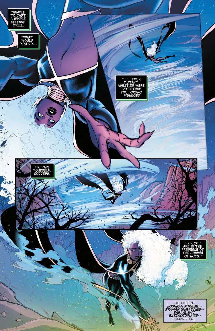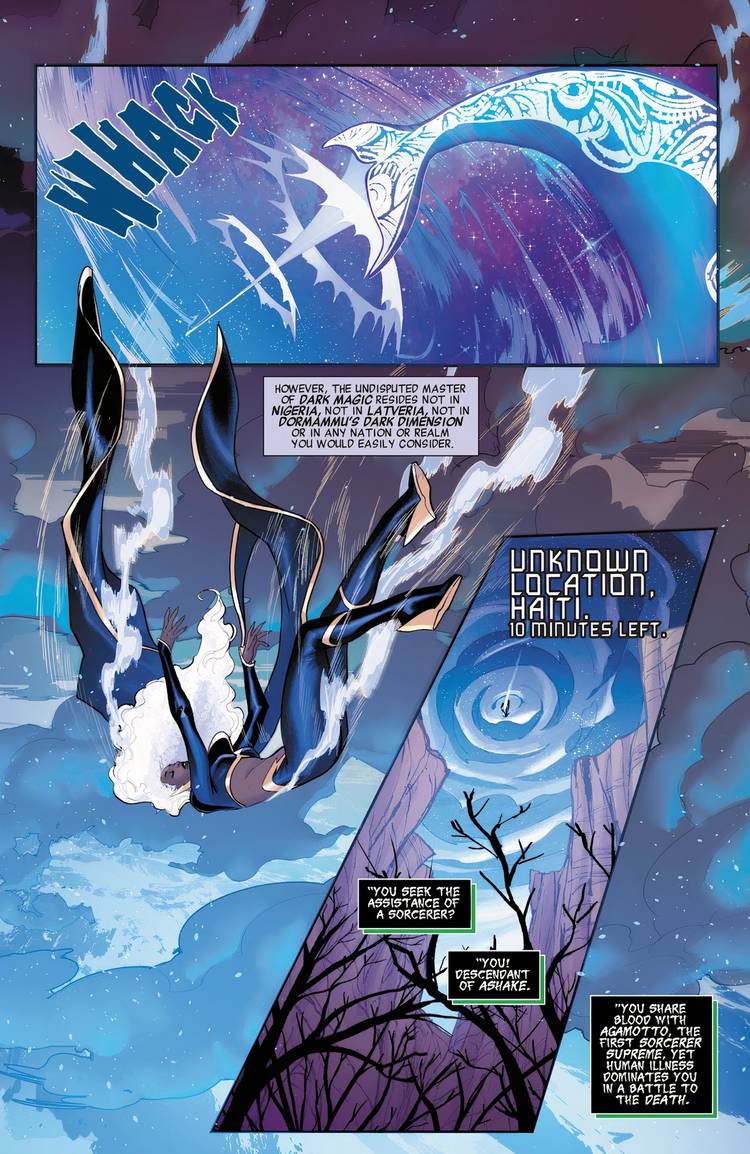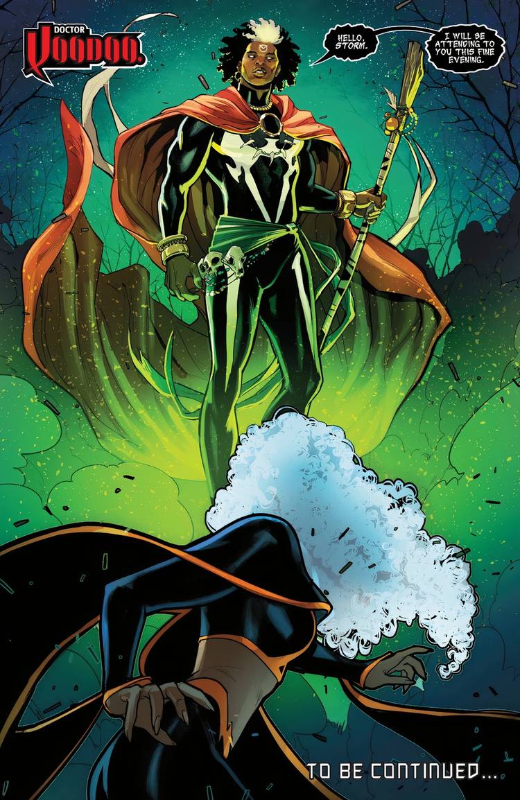 Tormenta #2, del escritor Murewa Ayodele con arte de Lucas Werneck y Alex Guimarães, ve Storm busca tratamiento médico por el envenenamiento por radiación que la está matando. llevándola al cuidado mágico de Jericho Drumm. El Doctor Voodoo es descrito como el “Maestro indiscutible de la Magia Oscura”, mientras que la narración afirma explícitamente que el Maestro no está en Latveria, lo que socava directamente el legado de Doom y su nuevo papel como Hechicero Supremo.