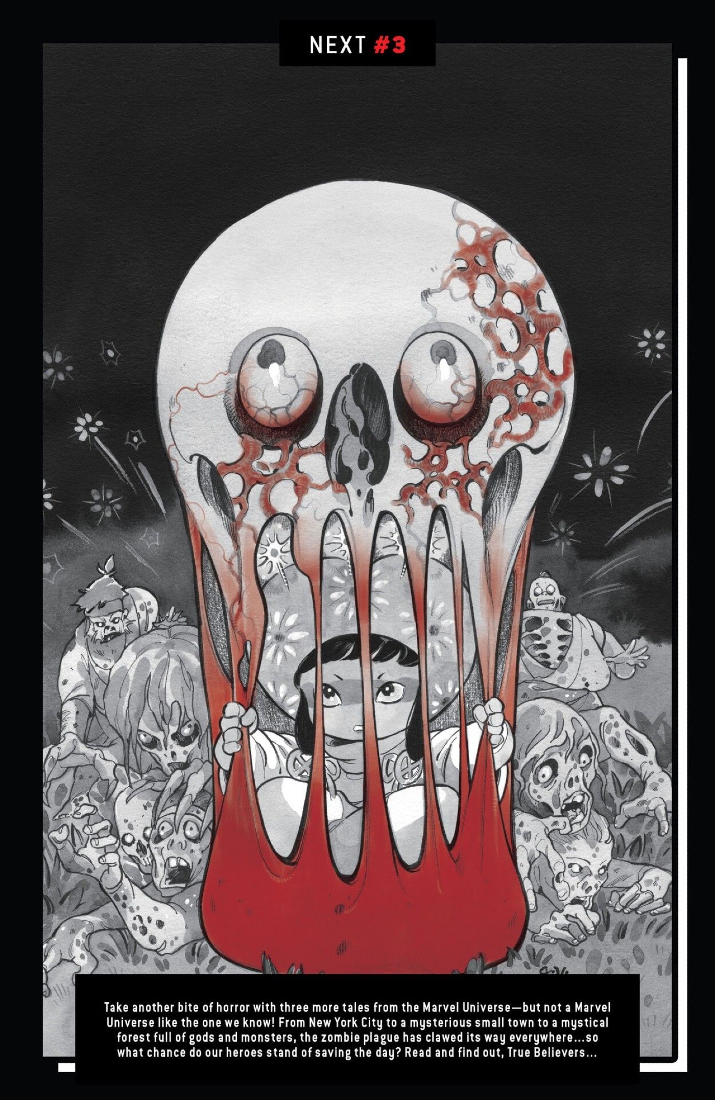 - Marvel Zombies: Black, White & Blood #3 toma el horroroso universo de Marvel Zombies y lo colisiona con el encantador Momokoverse de Peach Momoko.
