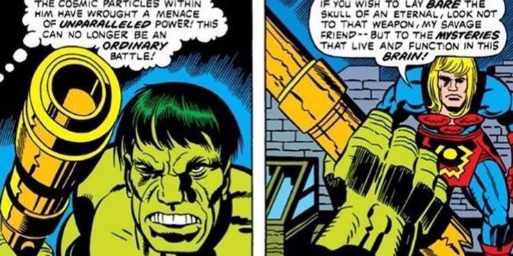 Jack Kirby, junto con Stan Lee y otros, ayudaron a crear el Universo Marvel como los fanáticos lo conocen hoy hasta la década de 1960. Insatisfecho con la dirección que estaba tomando Marvel, Kirby se fue por un breve período en DC antes de regresar a Marvel a mediados de los 70. Una de sus primeras creaciones a su regreso fue The Eternals, una raza de súper seres creados por los Celestiales que habían coexistido en secreto con la humanidad durante miles de años e inspiraron muchas de las leyendas y mitos de la Tierra. Kirby inicialmente no quería que Ikaris, Sersi y el resto se cruzaran con el Universo Marvel normal, pero el editorial insistió, y en el número seis, los Eternos se encontraron con agentes de SHIELD menos que sabrosos. Marvel continuó presionando a Kirby para que incorporara personajes externos, y él cedió, trayendo a Hulk a la imagen … algo así.