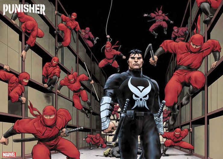 The Punisher es uno de los personajes más populares e icónicos del mundo del cómic, y Marvel ha buscado recientemente actualizar al justiciero. Sin embargo, después de que varios grupos extremistas de extrema derecha comenzaron a usar Punisher y su símbolo característico de calavera como propios, tanto Marvel como el creador Gerry Conway han estado menos dispuestos a promocionar al personaje en su forma anterior. Ambos están ahora abiertos a una reconstrucción que mantiene la intensidad de Punisher y evita aquellos aspectos que atraen a los extremistas. Hasta ahora, los esfuerzos de renovación de Marvel se han centrado en modificar el carácter y la mentalidad de Frank Castle lejos de las armas y su “Si eres culpable, estás muerto.” mentalidad. En un adelanto de la próxima Castigador En la serie independiente de Jason Aaron, Jesús Saiz, Paul Azaceta y Dave Stewart, Castle se une al clan ninja conocido como la mano y cambia su logotipo de calavera por uno que se asemeja más a una cara de oni-demonio.