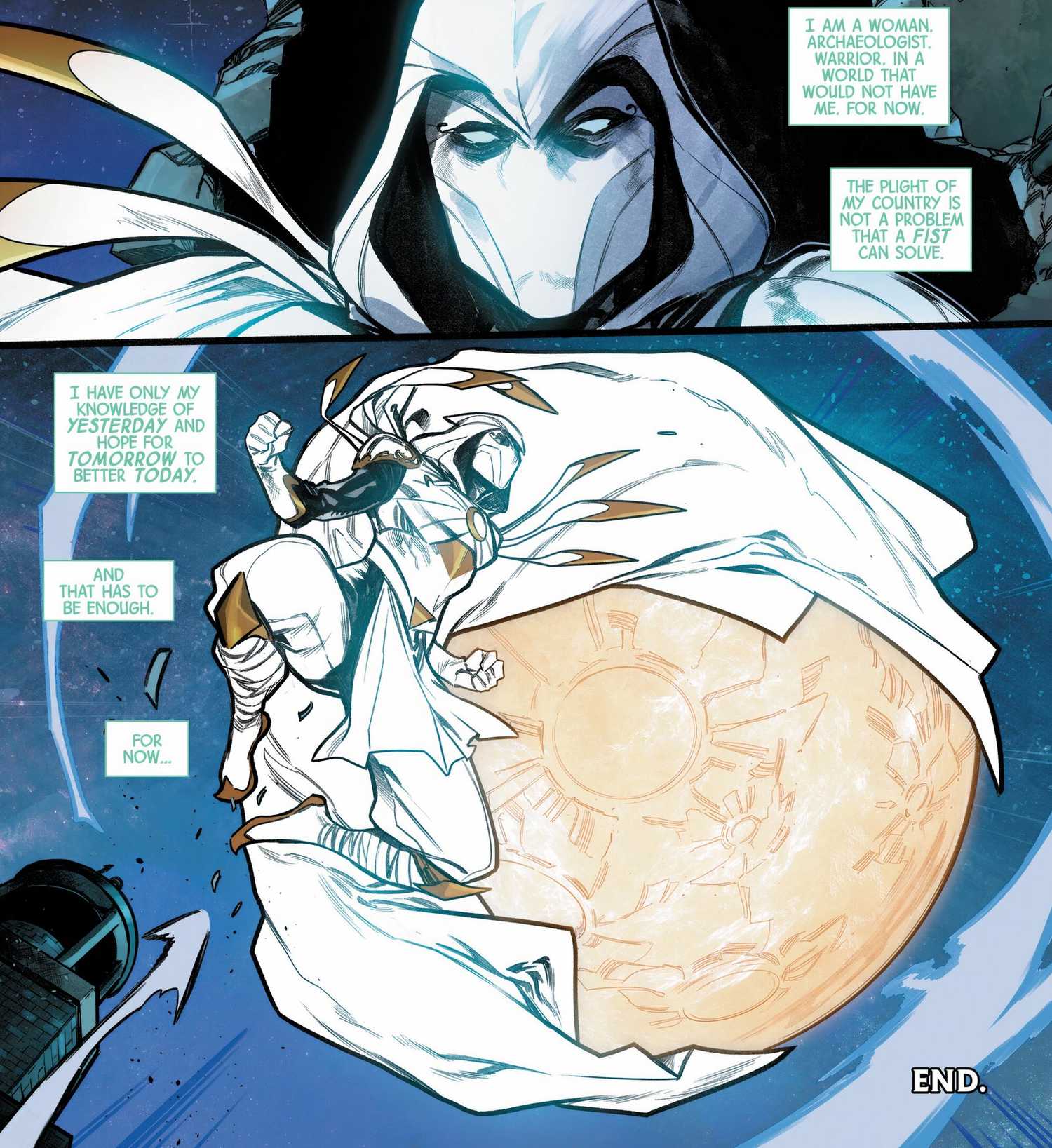 El debut de Nakia supone un gran paso para Moon Knight, un personaje cuyo origen era literalmente el de un agente militar extranjero en Egipto, “elegido” por los dioses egipcios. Si bien la franquicia Moon Knight ofrece a los lectores el personaje de Hunter’s Moon, un médico egipcio que se convierte en otro de los sirvientes de Khonshu, sigue siendo claro que Hunter’s Moon es un personaje secundario, mientras que el estadounidense Marc Spector sigue siendo la figura principal. Por el contrario, Nakia no es un personaje secundario.: ella es la Caballero Luna de su generación.