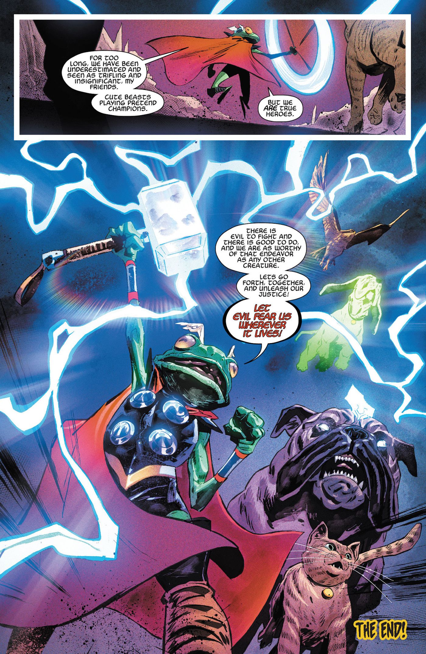 - Throg pronuncia un conmovedor discurso a sus compañeros de equipo, instándolos a demostrar que son verdaderos héroes y mostrarle al mundo su potencial.