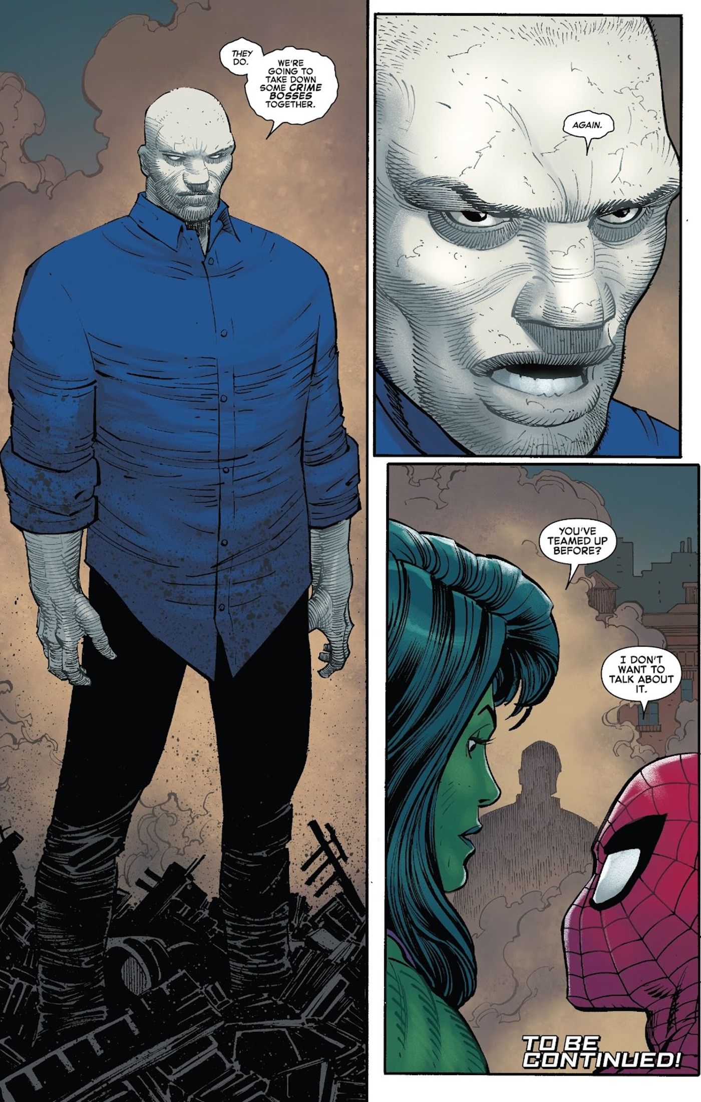 “/> Al final del último número, Spidey señala que esta no es la primera vez que él y Tombstone unen fuerzas a regañadientes, pero sin duda es la más significativa en comparación con la última vez. Hay mucho en juego para Tombstone; para él, el destino de Nueva York no sólo está en juego, sino que también está en juego el destino de su hija y su interés romántico. Está luchando directamente junto a su viejo enemigo para protegerlo. Si Lápida sepulcralPuede ser que esté tan comprometido con las personas que ama, especialmente después de que una vida de crimen casi lo mata, su compromiso y su nueva humildad podrían hacer que finalmente le dé la espalda al crimen cuando esta colaboración con Hombre araña se acabó.