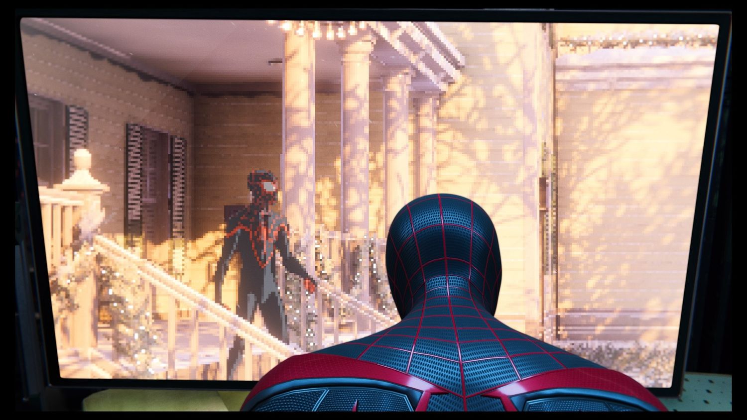 La única incorporación nueva al mundo abierto, y sin duda la evolución más impresionante de la fórmula establecida en el juego original, es la aplicación Friendly Neighborhood Spider-Man. La aplicación permite a los ciudadanos comunicarse con Miles para obtener ayuda y contiene misiones únicas para completar. Estas misiones son maravillosas y enfatizan las interacciones mundanas que reiteran la conexión íntima de Miles con la ciudad. Mejor aún, varias de estas misiones profundizan la relación entre Miles y Peter. Peter complementó el traje de Miles con conferencias que se activan al realizar tareas específicas, por lo que, durante varias de estas misiones, Peter reflexiona sobre cómo convertirse en Spider-Man lo cambió, ayudándolo a ver la humanidad de los demás. Miles refleja esto y comienza a ver elementos de la vida de Nueva York, como las palomas, bajo una nueva luz: lo que una vez descartó como una molestia y asqueroso se convierte en un símbolo de conexión y amor.