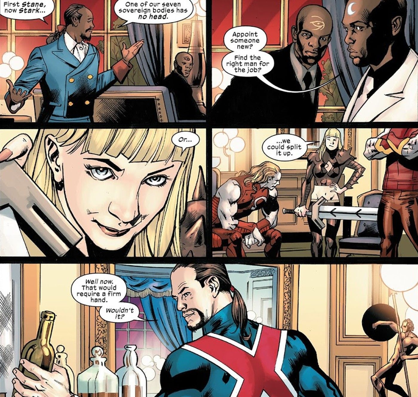 Con la antigua camarilla del Hacedor planeando dividirse Estados Unidos después de la desaparición de Howard, parece que estos Vengadores Definitivos se enfrentarán a algunas caras familiares, comenzando con el malvado Capitán Gran Bretaña Henri Dugarry. Es la rebelión de Tony Stark contra el mundo, con el espectro del eventual regreso del Creador flotando sobre todos. Lo que es seguro es que está a punto de comenzar una era completamente nueva con la Universo definitivola fundación Vengadores.