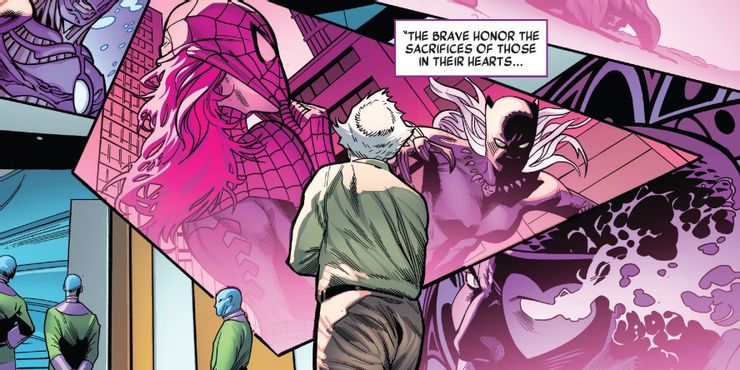 Además, este vistazo al futuro parece como si a MJ se le uniera el amor intermitente de T’Challa y la ex reina Storm (dado el cabello blanco). Esto también encajaría bien con la línea destacada: “los valientes honran los sacrificios de los que están en sus corazones“, una posible burla de un futuro en el que tanto Peter como T’Challa tal vez estén perdidos o se crea que están muertos con sus seres queridos llevando sus respectivos mantos. Sin embargo, también es posible que esto sea solo una mirada a un futuro potencial que podría ni siquiera llegará a suceder en la línea de tiempo principal de Marvel.