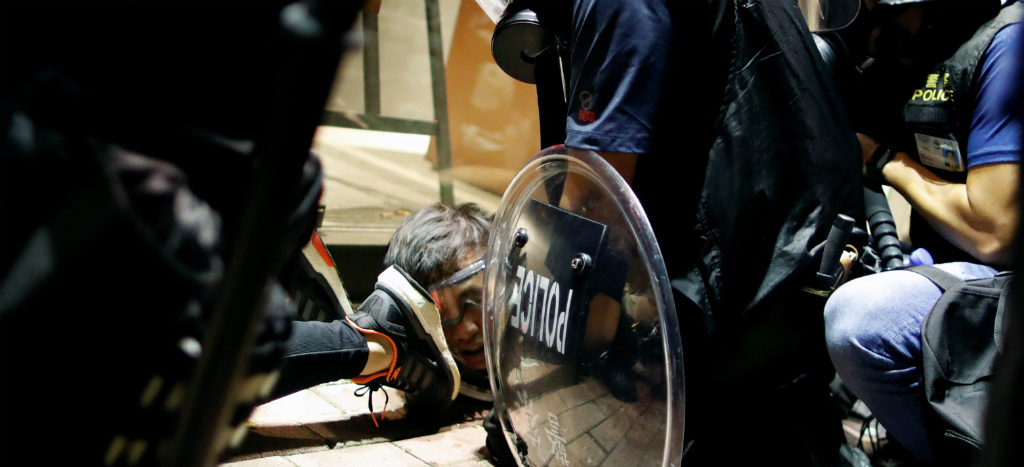 Las manifestaciones a favor de la democracia en Hong Kong terminaron la medianoche del domingo con arrestos y enfrentamientos entre opositores y la policía, que por primera vez arrojó gas lacrimógeno dentro de una estación del Metro, mientras por tercer día seguido hubo protestas en el Aeropuerto Internacional.