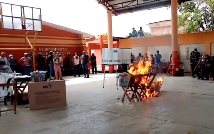 Más tarde, en el municipio de Villaflores, ubicado en la zona centro de Chiapas, hombres armados con palos y algunas pistolas, vestidos de blanco y a bordo de varias camionetas, intimidaron a los votantes. En el municipio Parral y Huehuetán quemaron urnas con votos.