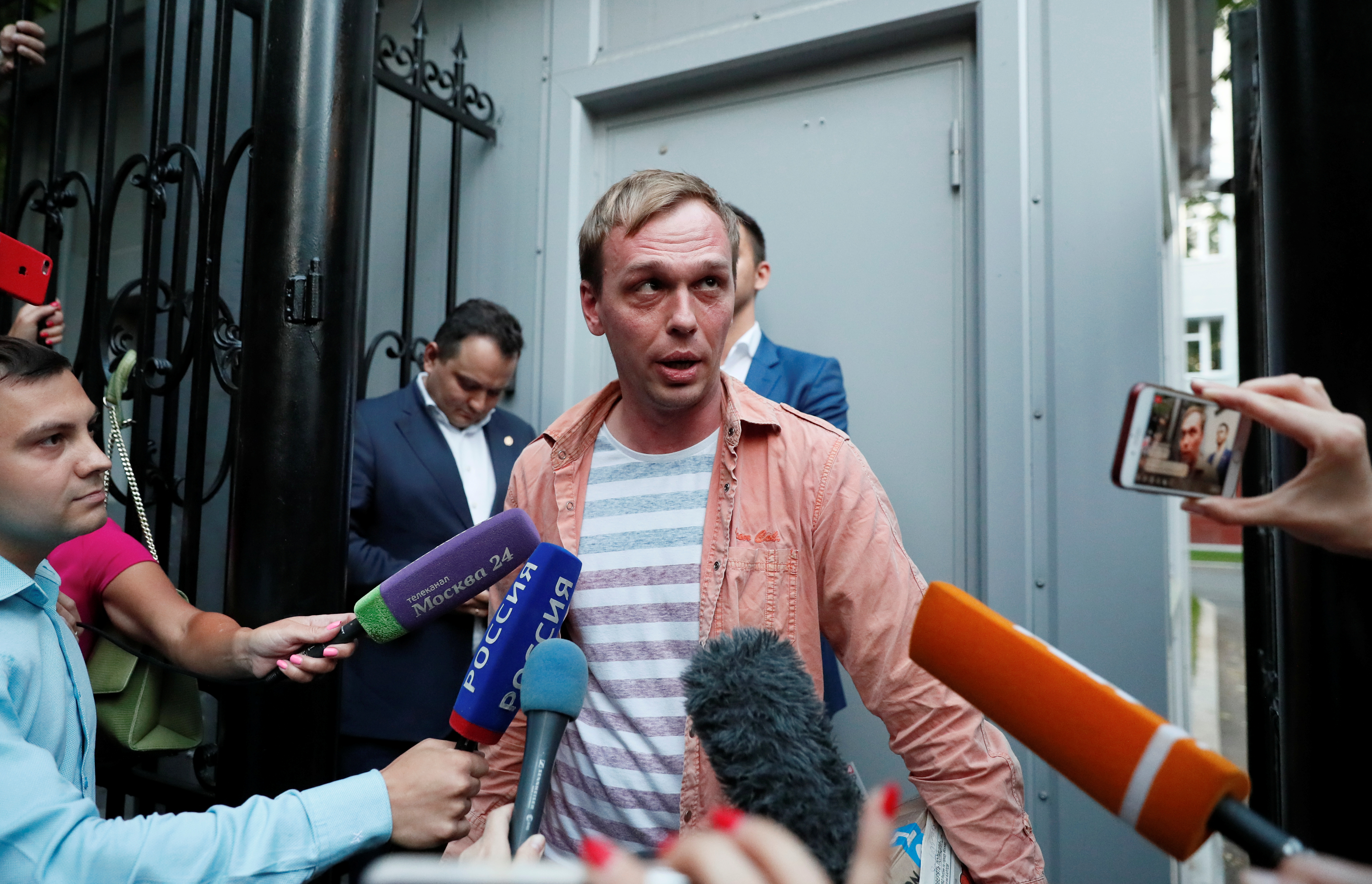 “Mi daño moral será compensado si esto vuelve a ocurrir con nadie más”, dijo emocionado Golunov y agradeció el apoyo tras ser liberado (Foto: REUTERS/Shamil Zhumatov)