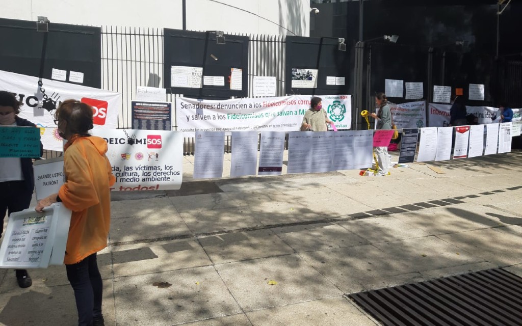 Senadores estamos colocando en paredes y rejas del edificio donde se han cerrado al diálogo, todos los pronunciamientos que se han emitido en contra de la desaparición de fideicomisos públicos.
