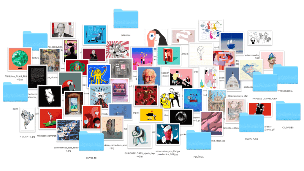 Las fotografías y las ilustraciones son los motores gráficos de un periódico. Normalmente, las primeras retratan la realidad y los dibujos la interpretan, pero no siempre es así: en este segundo año de pandemia, EL PAÍS ha publicado numerosas ilustraciones tremendamente descriptivas, llenas de mascarillas, oficinas desiertas, abrazos perdidos, políticos que dan miedo, gente que lee y muchos, muchos teléfonos móviles. De entre la marea de trabajos publicados en las páginas de papel o píxel de este diario (solo en la sección de Opinión han salido más de 450 originales) hemos seleccionado 51 ilustraciones que resumen (y a veces interpretan) el año que ya se fue.