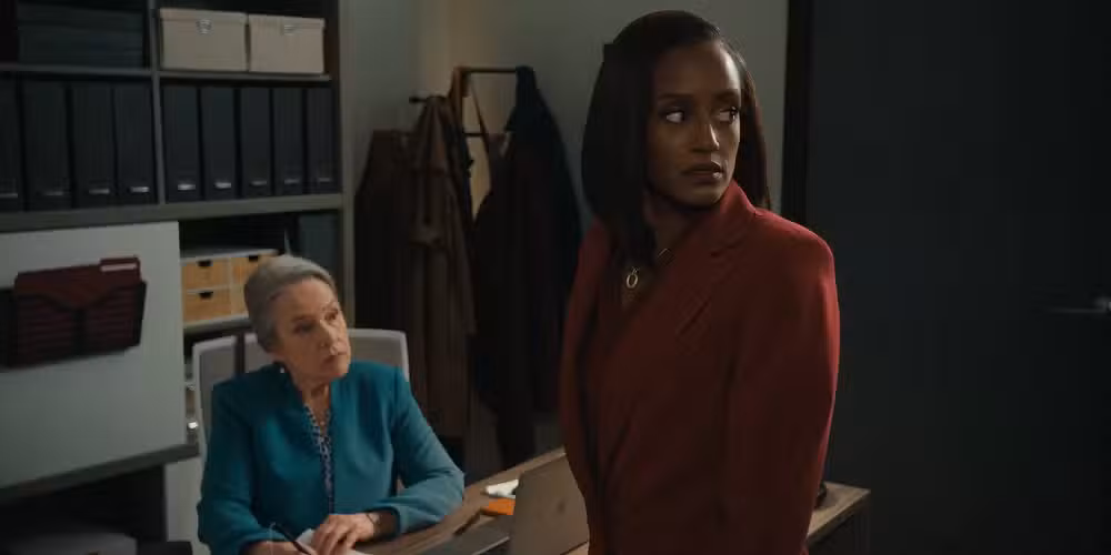 Skye P. Marshall: Entonces, cuando recibimos el guión para el final de la primera temporada, realmente pensé que iba a ir al banco, ir a la caja de seguridad, abrirla, y eso iba a ser el gran suspenso sin ver si el estudio estaba en la caja de seguridad de Julian o no. Y entonces, me emocioné mucho cuando leí el guión y pensé: “Sí, el público puede irse sabiendo que entre Senior, Olympia y Julian, era Julian. Todos podemos tomarnos un descanso sabiendo que sabemos quién fue el responsable de ocultar el estudio”. Y Jenny y el equipo de redacción, nuestro equipo creativo, son muy generosos al saber que “Puedo contarles este enorme secreto. Puedo brindarles los resultados de este misterio, y hay más”.