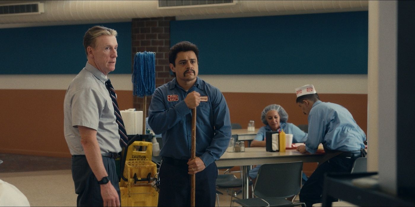 Dennis Haysbert: Cuando piensas en lo que quiero aportar al papel, es autenticidad. Y siendo un hombre de color, entiendo por lo que estaba pasando en esa fábrica. Y luego, cuando el personaje de Jesse venga y quiera congraciarse, vas a dar un paso atrás. Esa es la reacción natural, como, “Está bien, ¿qué quieres? ¿Quién eres? ¿Te envió la empresa?” Le dije: “Eres un conserje. ¿Qué? No, hombre. No te voy a enseñar mi máquina para que puedas tomar mi trabajo”.