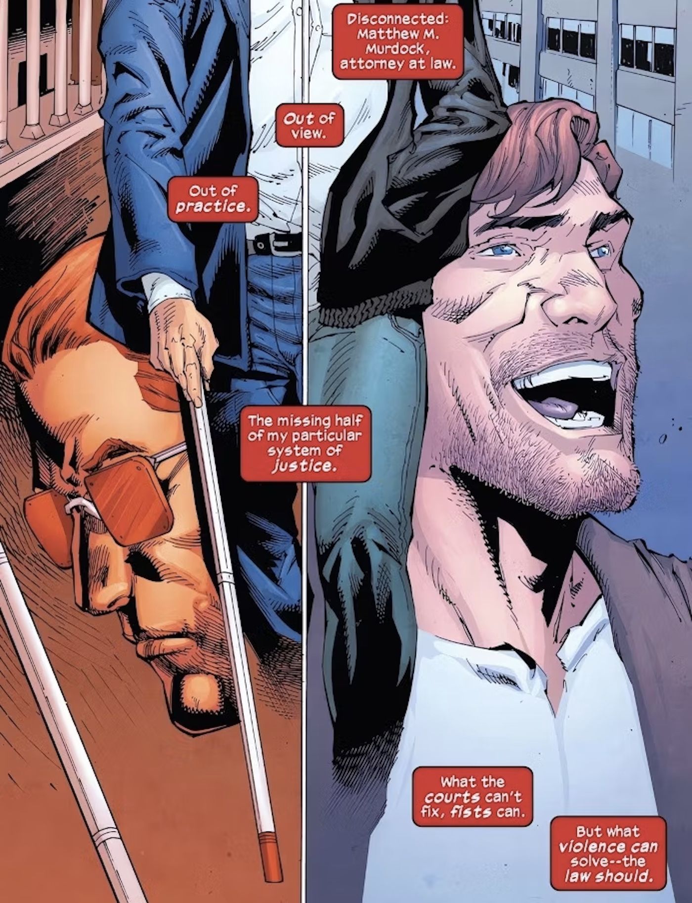 • Daredevil cree que su vigilantismo es inútil sin su capacidad para abogar por mejores leyes.