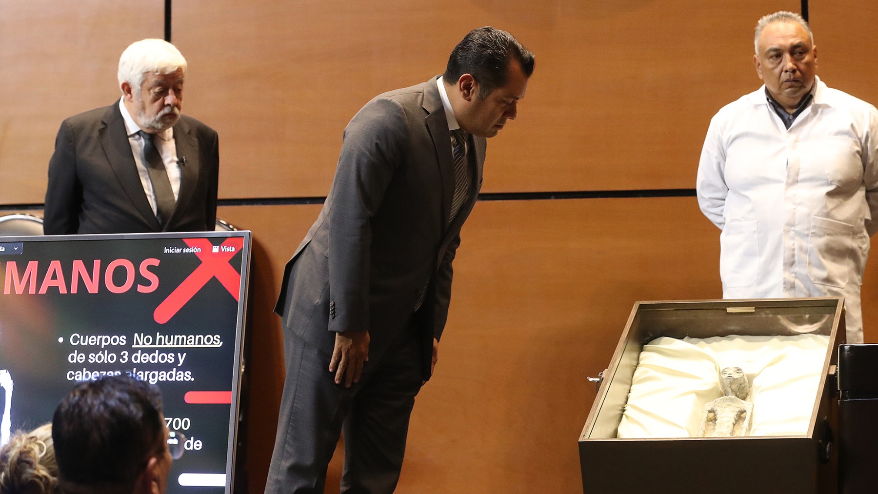 La presentación ha tenido lugar en la primera audiencia púbica para la posbile legislación de fenómenos aéreos anómalos no identificados en México. En ella, el ufólogo ha presentado dos cuerpos de alienígenas de más de mil años y de origen no humano, según una investigación que ha llevado a cabo la Universidad Nacional de México (UNAM).